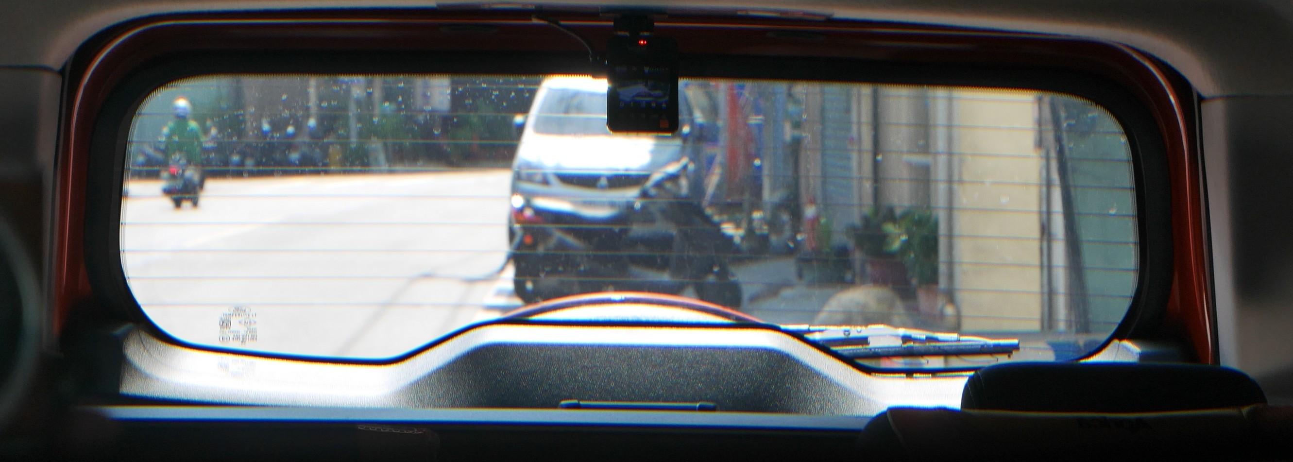 我先抓出車身佔1/4,以判定後方車與我車之相對位置,尤其是後方的機車