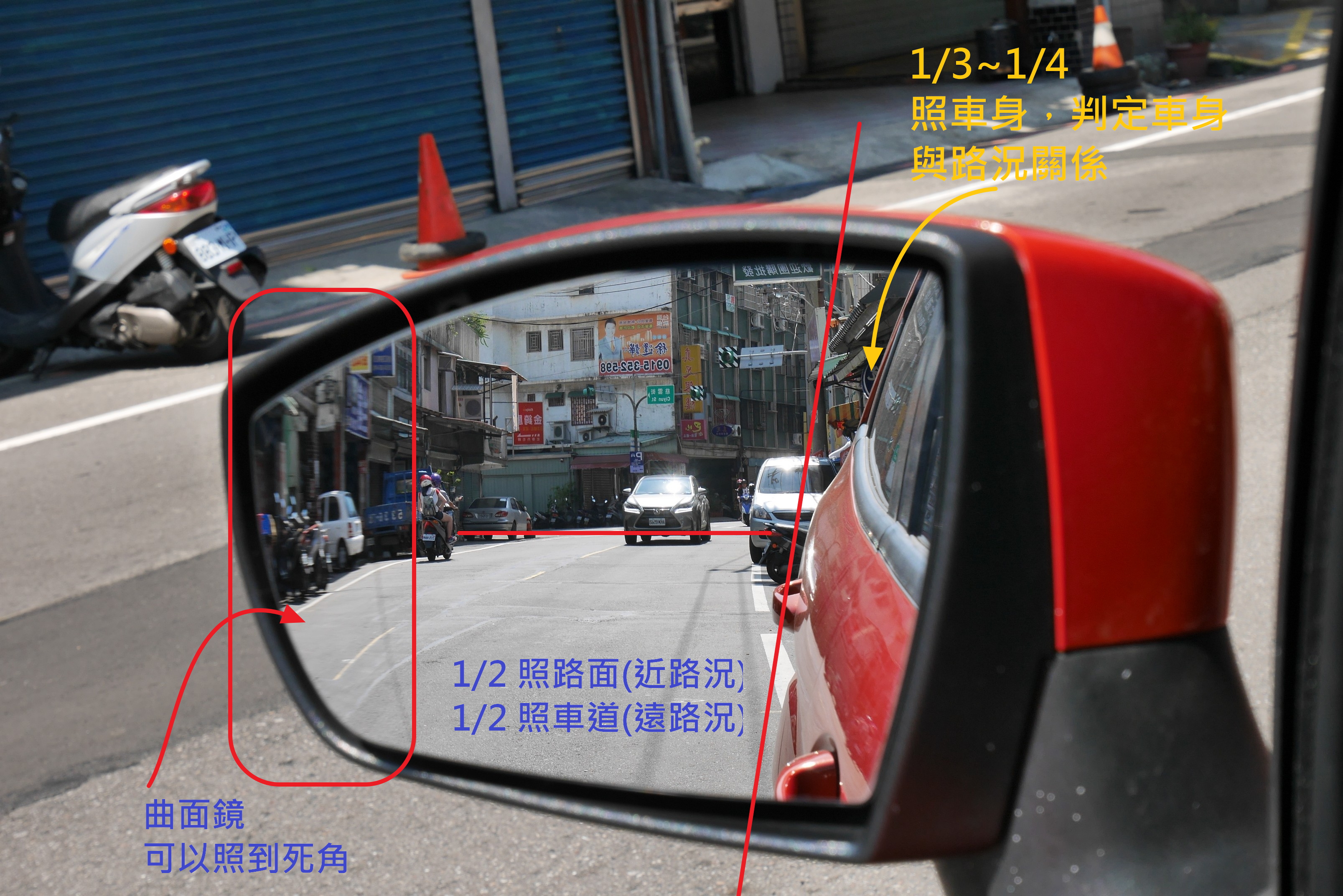 先調整好坐姿,再以平常開車的頭部位置看後視鏡來調整