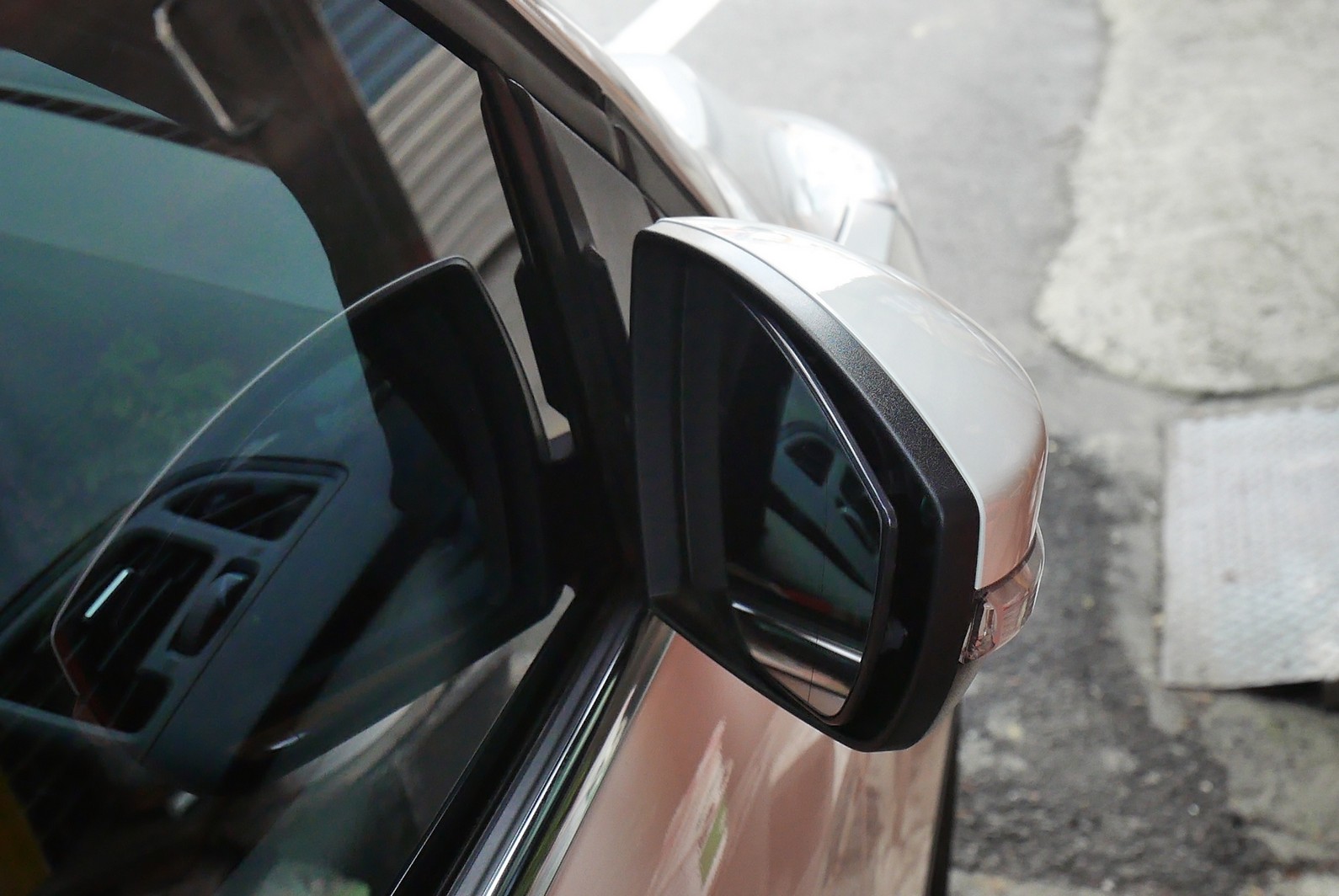 後視鏡有電動收折,但收折的幅度我覺得不大。