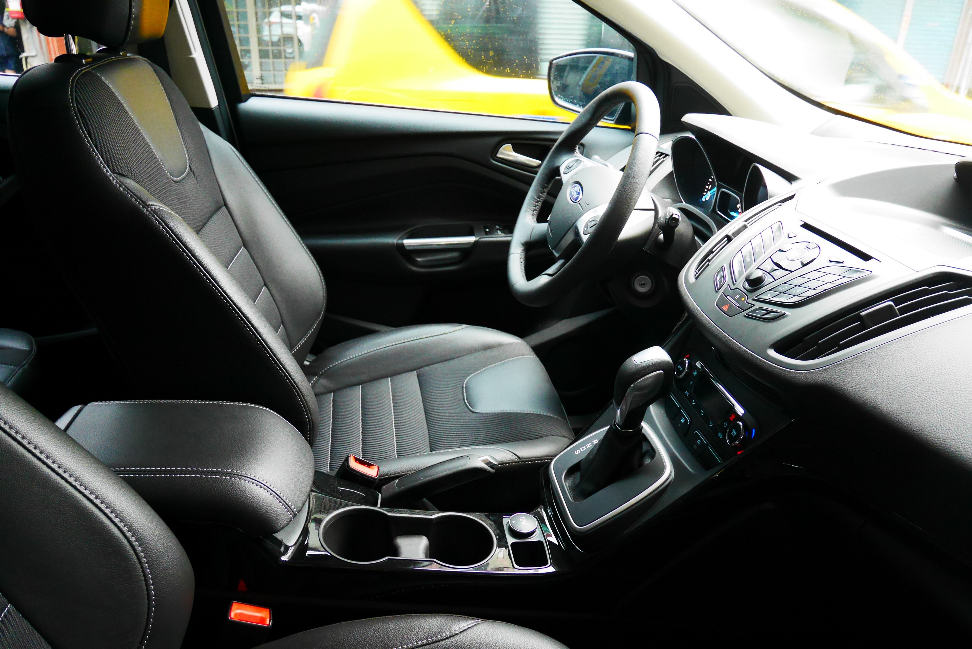 kuga的方向盤則是較 ecosport 重手,女生可能要注意一下;排檔桿的位置較好,要換檔和切s檔的±按鈕時移動距離較短。